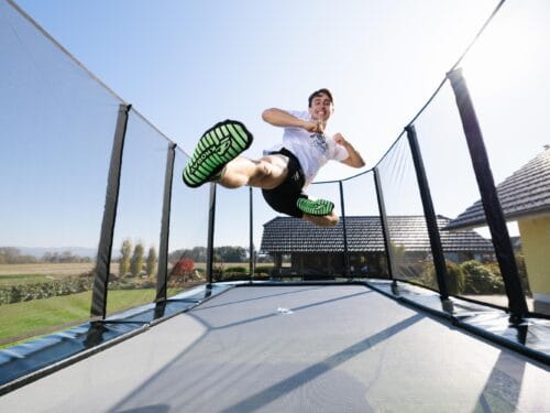 Bij onze Inground en flat to the ground trampolines heb je de keuze: helemaal zonder net, een half open veiligheidsnet (uniek in de markt) of een volledig net rondom. Het op- en afbouwen gaat snel en eenvoudig. Zo bepaal je zelf de balans tussen veiligheid, vrije toegang en een strak uiterlijk in je tuin.